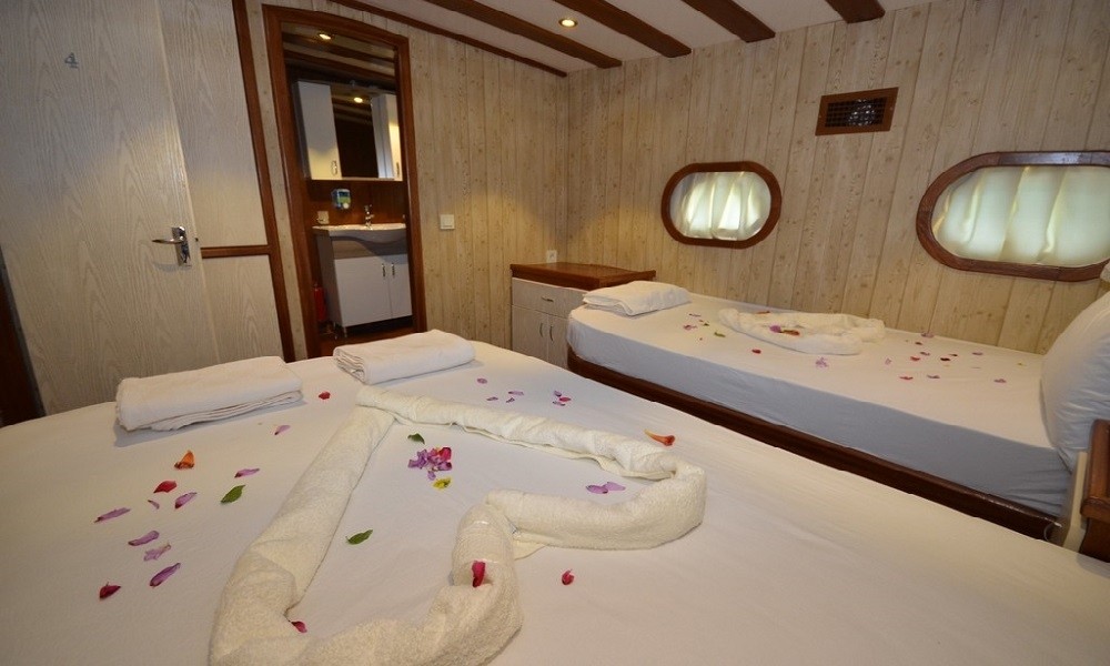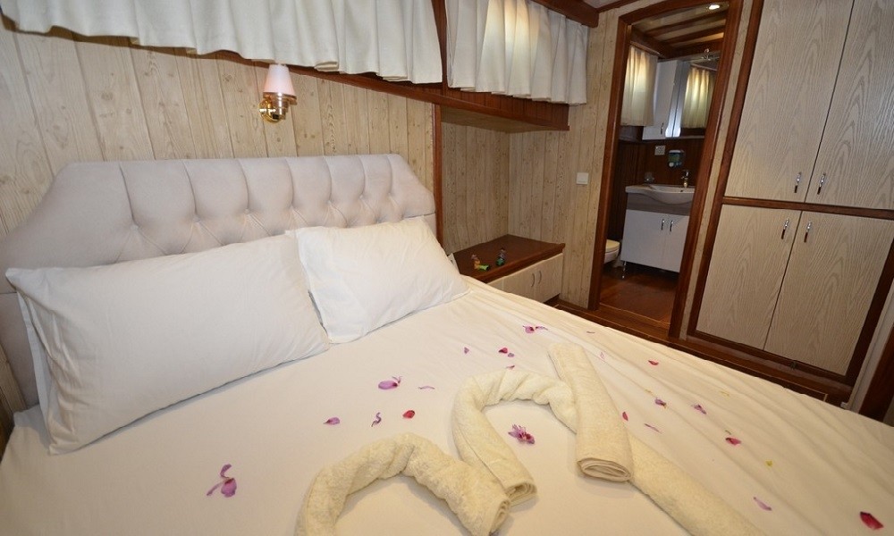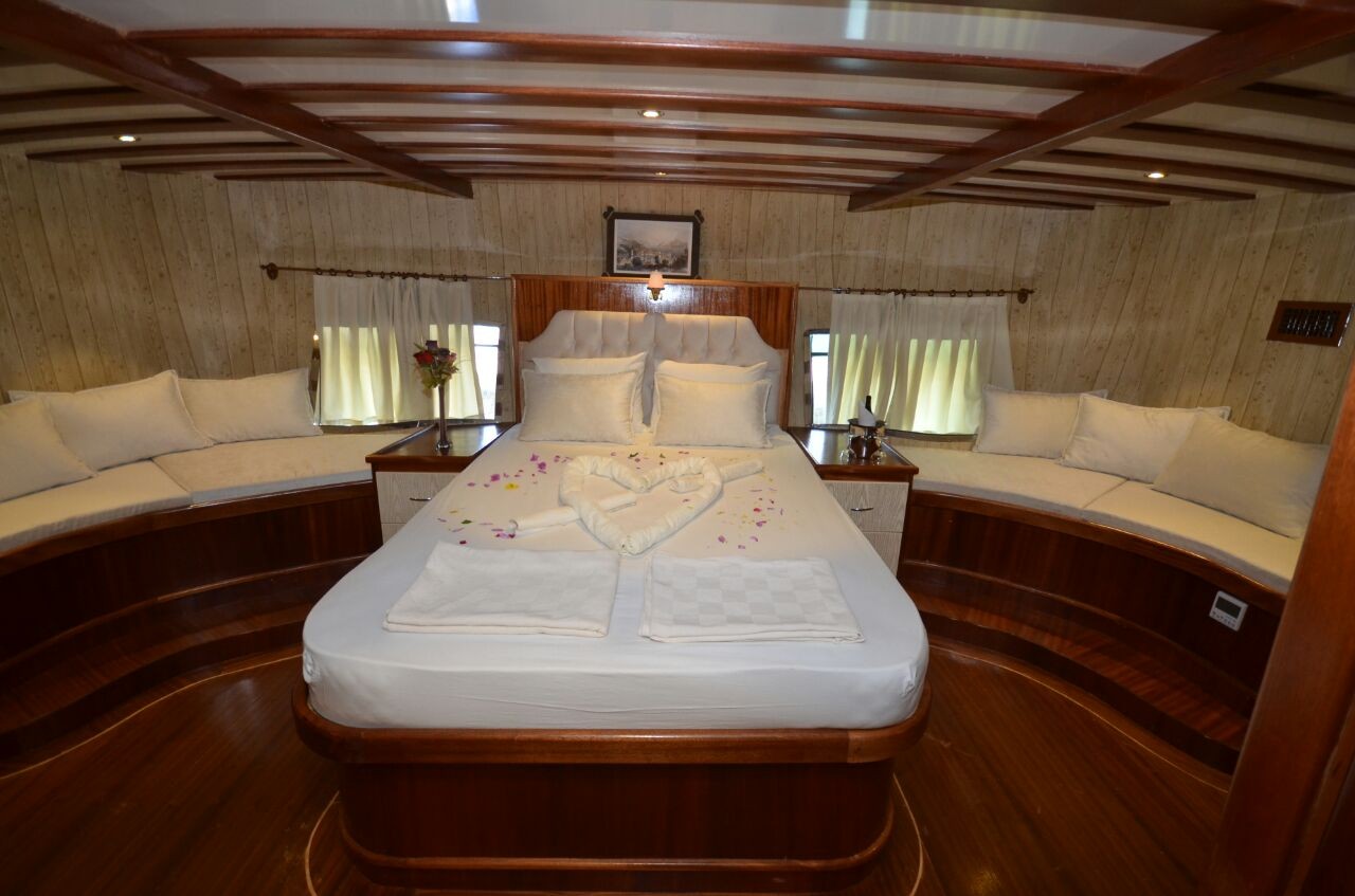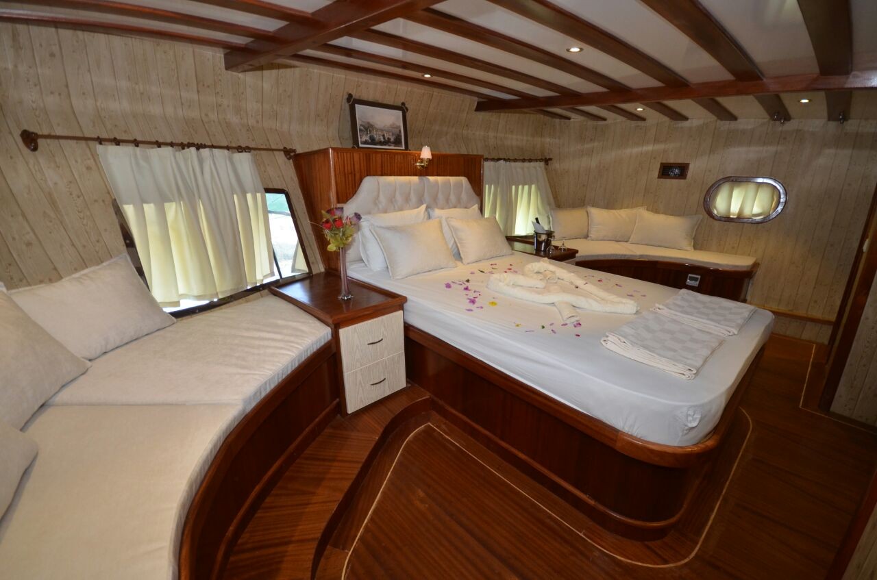 This wonderful deluxe gulet is 28 meters long and for 12 guests. It has 1 master cabin, 3 double cabin and 2 triple cabin. Each cabin has separate toilet, shower and A/C. We offer you reasonable prices and options for blue cruise. You can spend half of your holiday in the wonderful hidden paradise bays of aegean which are in Turkey. can spend rest of holiday in Greek Islands. Second option, you can prefer only Turkish bays or Greek islands. Each day 4 hours cruise and maximum 8 hours air conditioner is on between 14 to 16 and 22 to 04. It is comfortable yacht for both options that you will be able to rent with the crew.