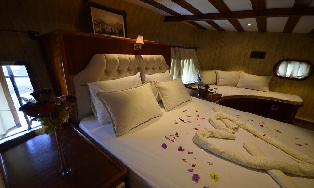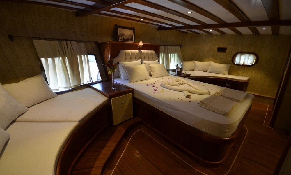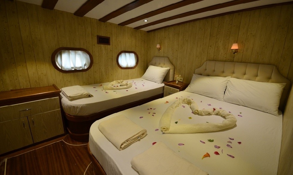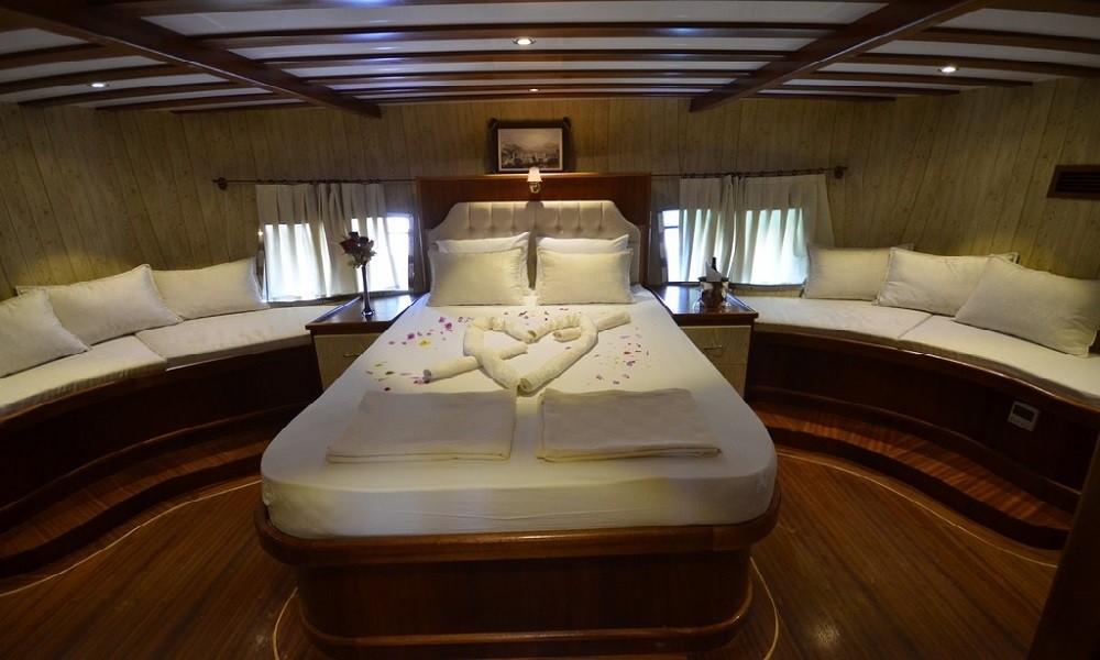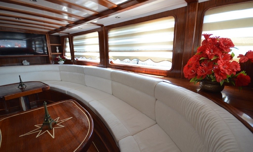 This wonderful deluxe gulet is 28 meters long and for 12 guests. It has 1 master cabin, 3 double cabin and 2 triple cabin. Each cabin has separate toilet, shower and A/C. We offer you reasonable prices and options for blue cruise. You can spend half of your holiday in the wonderful hidden paradise bays of aegean which are in Turkey. can spend rest of holiday in Greek Islands. Second option, you can prefer only Turkish bays or Greek islands. Each day 4 hours cruise and maximum 8 hours air conditioner is on between 14 to 16 and 22 to 04. It is comfortable yacht for both options that you will be able to rent with the crew.