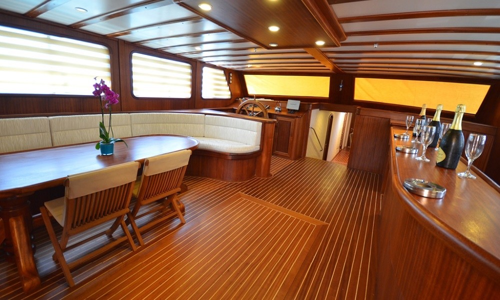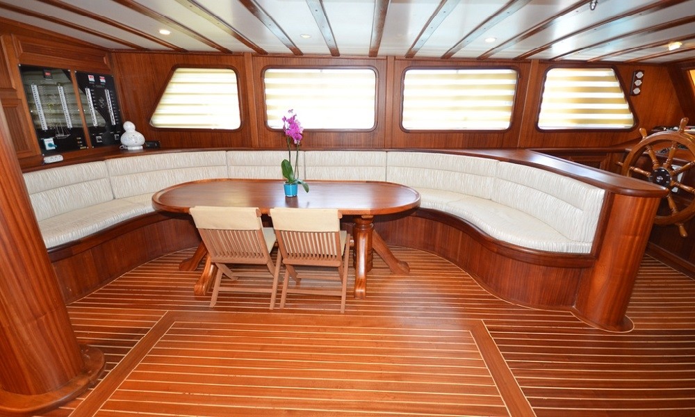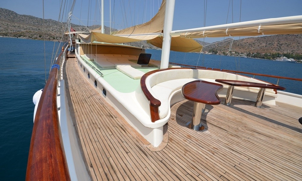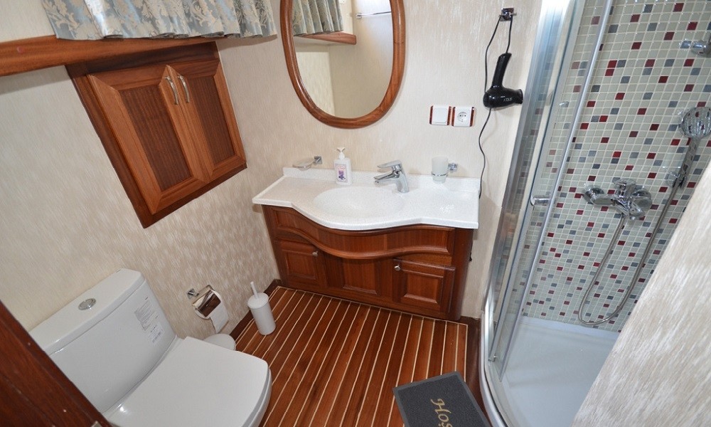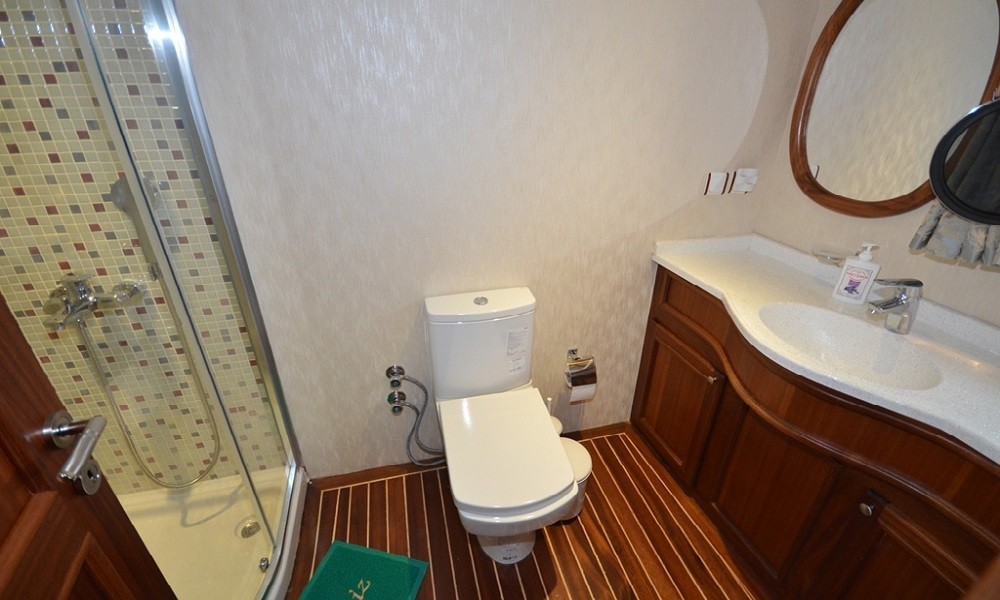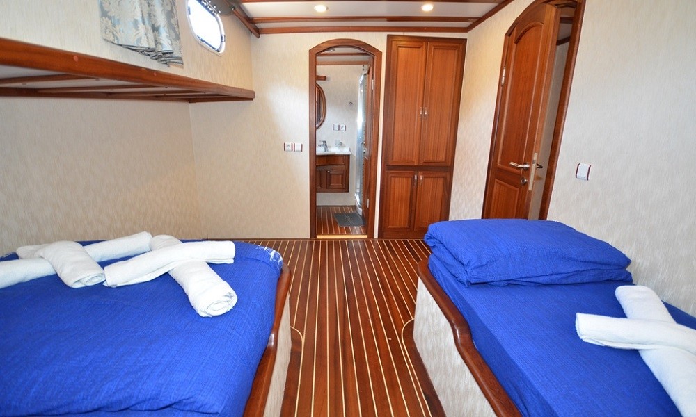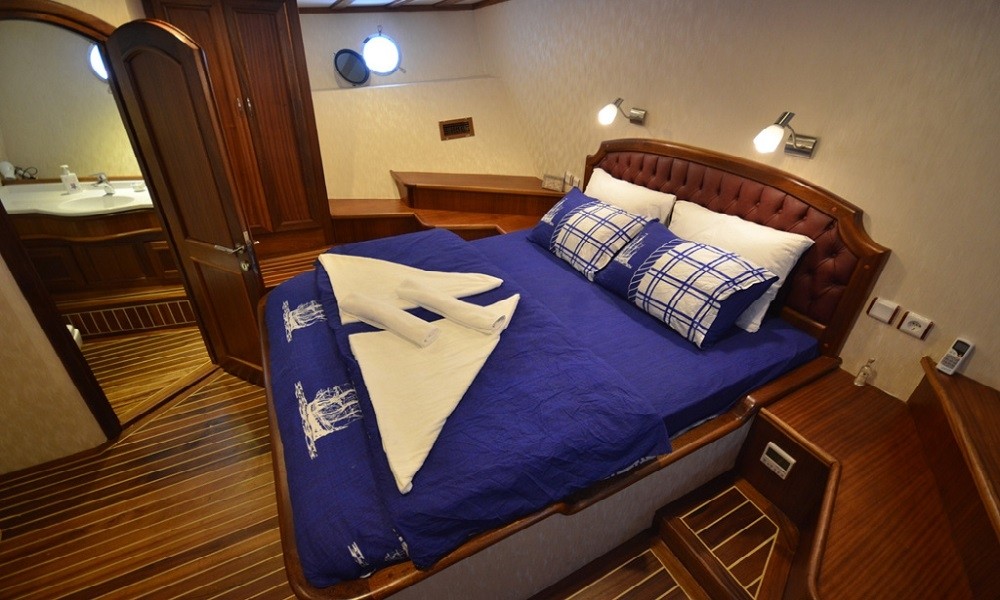 This wonderful deluxe gulet is 33 meters long and for 16 guests. it has 1 master cabin, 4 double cabin, 2 triple cabin and 1 twin cabin Each cabin has separate toilet, shower and A/C. We offer you reasonable prices and options for blue cruise. You can spend half of your holiday in the wonderful hidden paradise bays of aegean which are in Turkey. can spend rest of holiday in Greek Islands. Second option, you can prefer only Turkish bays or Greek islands. Each day 4 hours cruise and maximum 8 hours air conditioner is on between 14 to 16 and 22 to 04. It is comfortable yacht for both options that you will be able to rent with the crew.