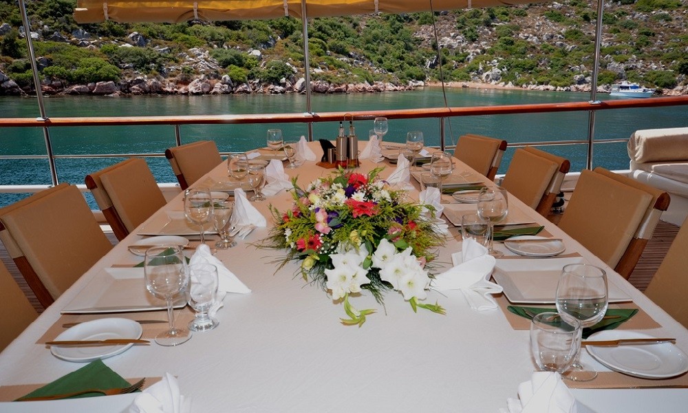 (birthday party, wedding anniversary, etc), If, you give us information about the date which is for your special day. You can be sure that We will make the best decoration on the yacht. Chef will be also happy to make a special cake for the celebration date. Also you may have a bottle of champaigne free from us as the gift for your celebration.