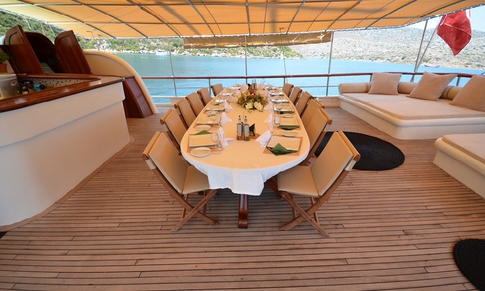 Chef cook has been working too in the yachts for the long years . He/She is quite good at the traditional kitchen and Mediterranean kitchen. If you book this yacht, we will ask, if you will have a special request for he meals or not (Vegan, Gluten Free, Low Fat etc.). Our chef will get ready the food according to your requests. You can be sure that Chef will be happy welcoming you and to care about your wishes. Always, we have received good compliments by our guests about the meals.