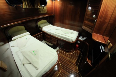This wonderful deluxe gulet is 34 meters long and for 22 people. It has 9 double and 2 twin cabin. Each cabin has separate toilet, shower and A/C. We offer you reasonable prices and options for blue cruise. You can spend half of your holiday in the wonderful hidden paradise bays of aegean which are in Turkey. can spend rest of holiday in Greek Islands. Second option, you can prefer only Turkish bays or Greek islands. Each day 4 hours cruise and maximum 8 hours air conditioner is on between 14 to 16 and 22 to 04. It is comfortable yacht for both options that you will be able to rent with the crew. CREW INFORMATION: CAPTAIN: He has been working as a captain since the long years in yachts. He is not only a professional captain but also he knows where the wonderful coasts, hidden paradise bays and historical ruins which are in Turkey very well. He will be happy to take you to the hidden paradise bays and inform about the historical ruins and culture there. CHEF COOK: Chef cook has been working too in the yachts for the long years . He/She is quite good at the traditional kitchen and Mediterranean kitchen. If you book this yacht, we will ask, if you will have a special request for he meals or not (Vegan, Gluten Free, Low Fat etc.). Our chef will get ready the food according to your requests. You can be sure that Chef will be happy welcoming you and to care about your wishes. Always, we have received good compliments by our guests about the meals. SAILOR: 2 Sailors will be at your service during your vacation. They are very friendly and they will be happy to serve and to care of you . OUR SERVICES: we know that how important and valuable is your vacation. We will do our best to make your holiday the best and much more confortable. Our professional guide is not only for briefing with you but also will be at your service during your vacation. He/She will be happy welcoming and caring you, introduce you to the crew, give briefing about the yacht, route and boat rules. Time to time, she/he is also going to be in touch with you to be sure that you are happy during your vacation. CELEBRATION ON YACHT: (birthday party, wedding anniversary, etc), If, you give us information about the date which is for your special day. You can be sure that We will make the best decoration on the yacht. Chef will be also happy to make a special cake for the celebration date. Also you may have a bottle of champaigne free from us as the gift for your celebration. The best wishes for a wonderful holiday INCLUDED IN THE PRICE : All charter and berth tax, harbour and port procedures, Transit Log and related formalities, Mooring expenses, Crew service, Ship water, Diesel & Gasoline, Bed Linen & Bath towels, Use of equipment on board,Yacht insurance,VAT, NOT INCLUDED IN THE PRICE : Yacht Catering - Beverages, Harbour taxes and custom fees in foreign waters, Airport transfers, The use of Jet-ski and the water sports on board if exist.. Optional : Breakfast, Lunch, Dinner Daily pre person 45 Euro