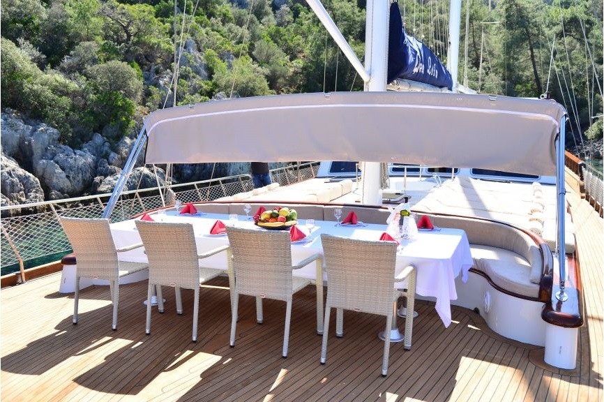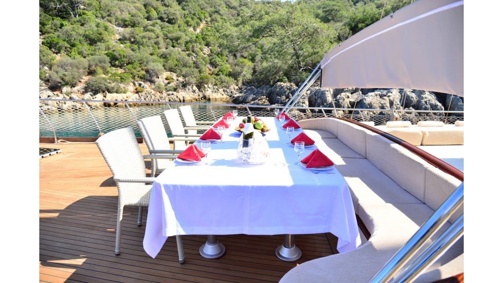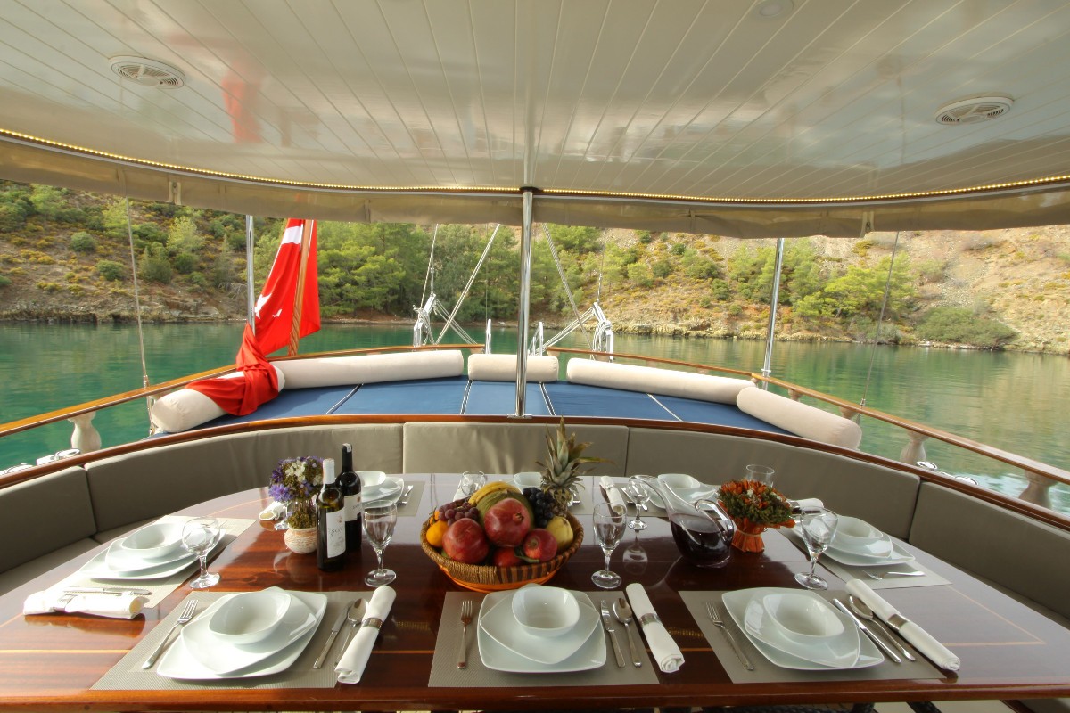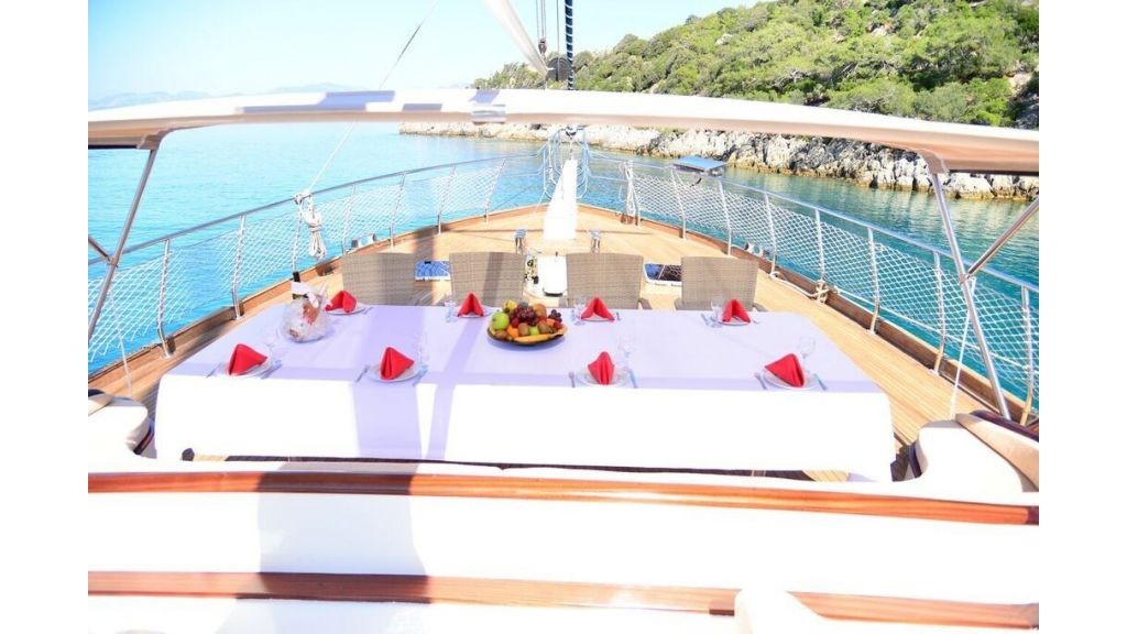 Chef cook has been working too in the yachts for the long years . He/She is quite good at the traditional kitchen and Mediterranean kitchen. If you book this yacht, we will ask, if you will have a special request for he meals or not (Vegan, Gluten Free, Low Fat etc.). Our chef will get ready the food according to your requests. You can be sure that Chef will be happy welcoming you and to care about your wishes. Always, we have received good compliments by our guests about the meals.