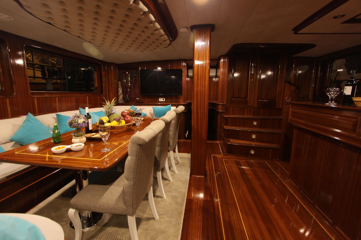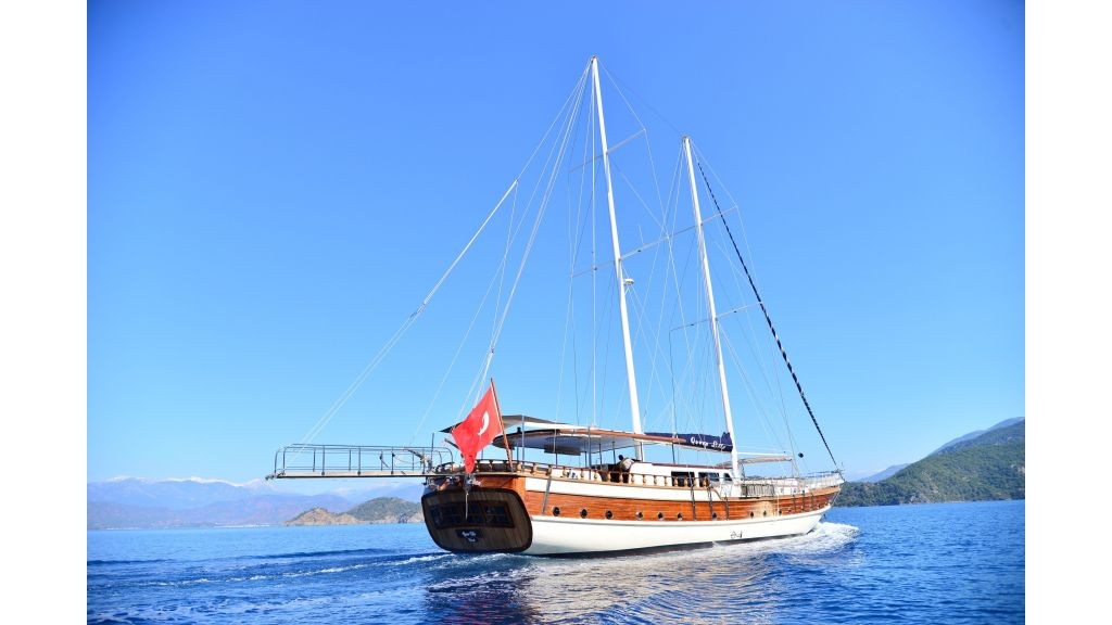This wonderful deluxe gulet is 30 meters long and for 12 guests. It has 1 master cabin, 3 double cabin and 2 triple cabin. Each cabin has separate toilet, shower and A/C. We offer you reasonable prices and options for blue cruise. You can spend half of your holiday in the wonderful hidden paradise bays of aegean which are in Turkey. can spend rest of holiday in Greek Islands. Second option, you can prefer only Turkish bays or Greek islands. Each day 4 hours cruise and maximum 8 hours air conditioner is on between 14 to 16 and 22 to 04. It is comfortable yacht for both options that you will be able to rent with the crew.