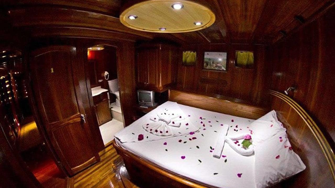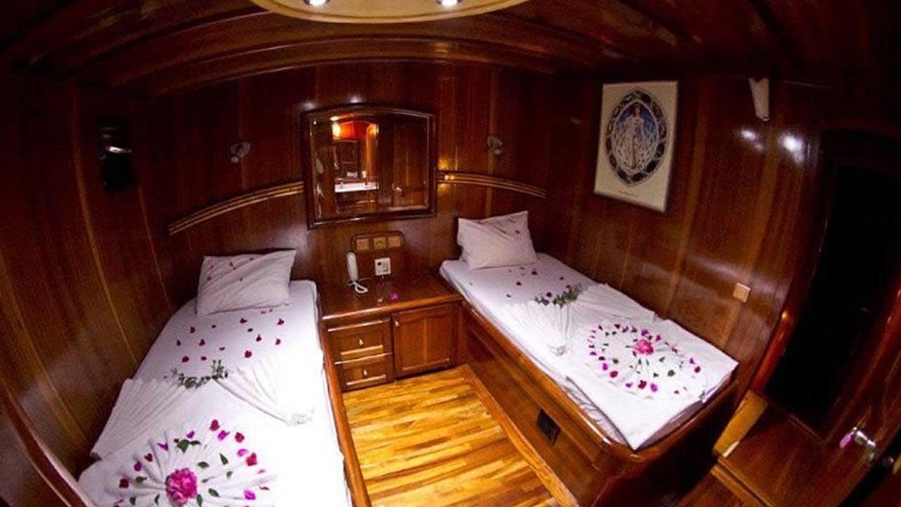 This wonderful deluxe gulet is 32 meters long and for 16 guests. it has 6 double cabin and 2 twin cabin Each cabin has separate toilet, shower and A/C. We offer you reasonable prices and options for blue cruise. You can spend half of your holiday in the wonderful hidden paradise bays of aegean which are in Turkey. can spend rest of holiday in Greek Islands. Second option, you can prefer only Turkey bays or Greek islands. Each day 4 hours cruise and maximum 8 hours air conditioner is on between 14 to 16 and 22 to 04. It is comfortable yacht for both options that you will be able to rent with the crew.