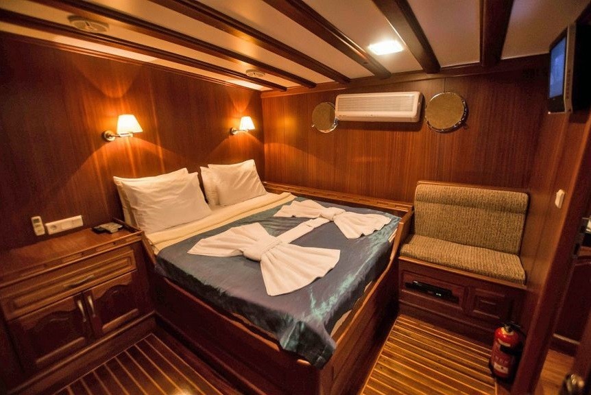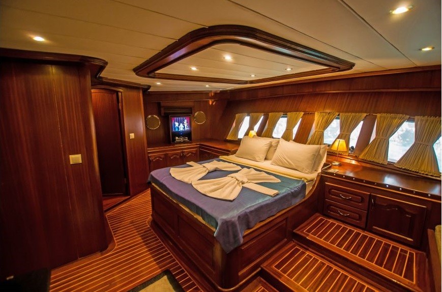This wonderful luxury gulet is 30 meters long and for 12 people. It has 1 master cabin, 1 twin cabin and 4 double cabin. Each cabin has separate toilet, shower and A/C. We offer you reasonable prices and options for blue cruise. You can spend half of your holiday in the wonderful hidden paradise bays of aegean which are in Turkey. can spend rest of holiday in Greek Islands. Second option, you can prefer only Turkish bays or Greek Islands. Each day 4 hours cruise and maximum 8 hours air conditioner is on between 14 to 16 and 22 to 04. It is comfortable yacht for both options that you will be able to rent with the crew..