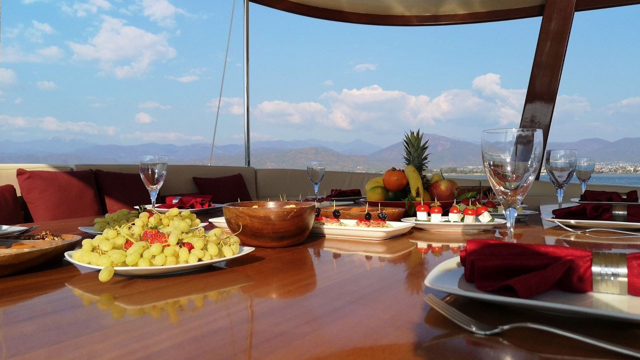 Chef cook has been working too in the yachts for the long years . He/She is quite good at the traditional kitchen and Mediterranean kitchen. If you book this yacht, we will ask, if you will have a special request for he meals or not (Vegan, Gluten Free, Low Fat etc.). Our chef will get ready the food according to your requests. You can be sure that Chef will be happy welcoming you and to care about your wishes. Always, we have received good compliments by our guests about the meals.