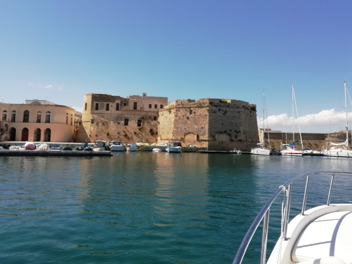 In compagnia di un esperto capitano che metterà a vostra disposizione la sua professionalità e gentilezza salperemo da Gallipoli la prima tappa sarà lo scoglio dei Piccioni meravigliosa scogliera semi emersa nel mare color smeraldo dove potremo ammirare l'isola di Sant Andrea, successivamente effettueremo una navigazione costiera ed una sosta balneare tra le mura fortificate di Gallipoli ove vi è il famoso "livellino di Gallipoli", il ponte Romano, la fontana Greca e il faro fortificato con blasoni porta cannoni utilizzati nella seconda guerra mondiale.