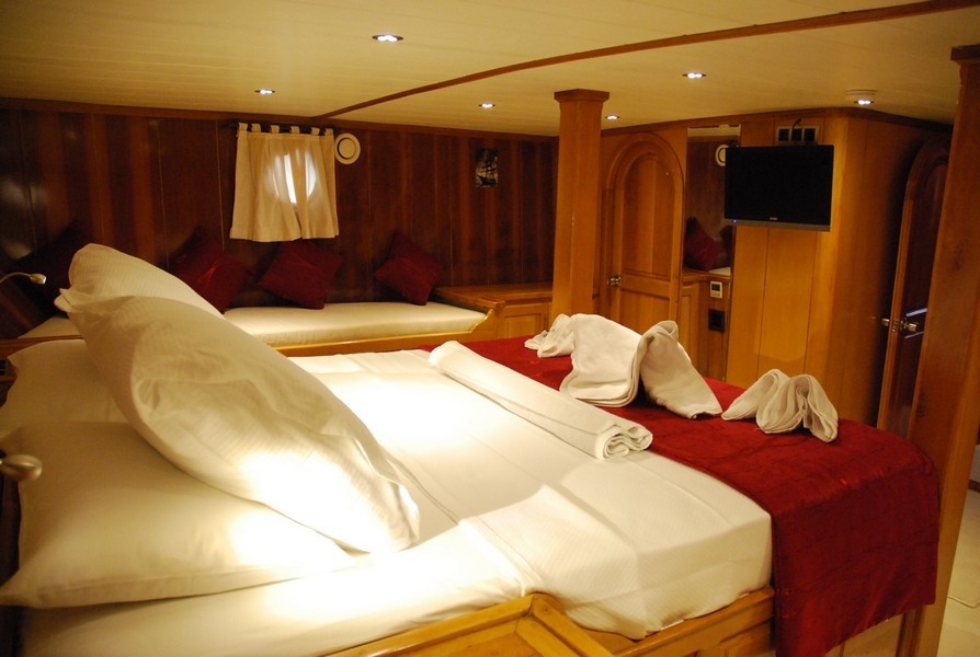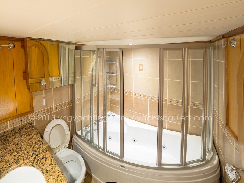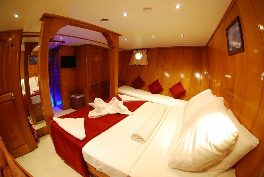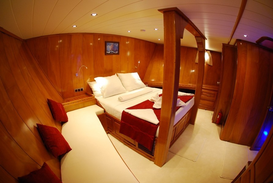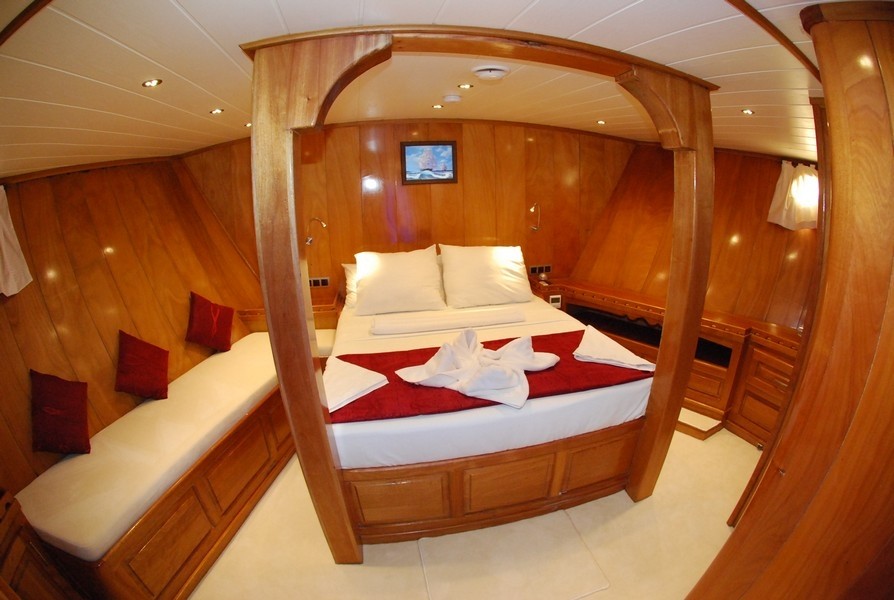 This luxury gulet is 24 meters long and for 8 guests. It has 2 master cabin 2 double cabin . Each cabin has Tv., separate toilet, shower and A/C. We offer you reasonable prices and options for blue cruise. You can spend half of your holiday in the wonderful hidden paradise bays of aegean which are in Turkey. can spend rest of holiday in Greek Islands. Second option, you can prefer only Turkish bays or Greek islands. Each day 4 hours cruise and maximum 8 hours air conditioner is on between 14 to 16 and 22 to 04. It is comfortable yacht for both options that you will be able to rent with the crew..