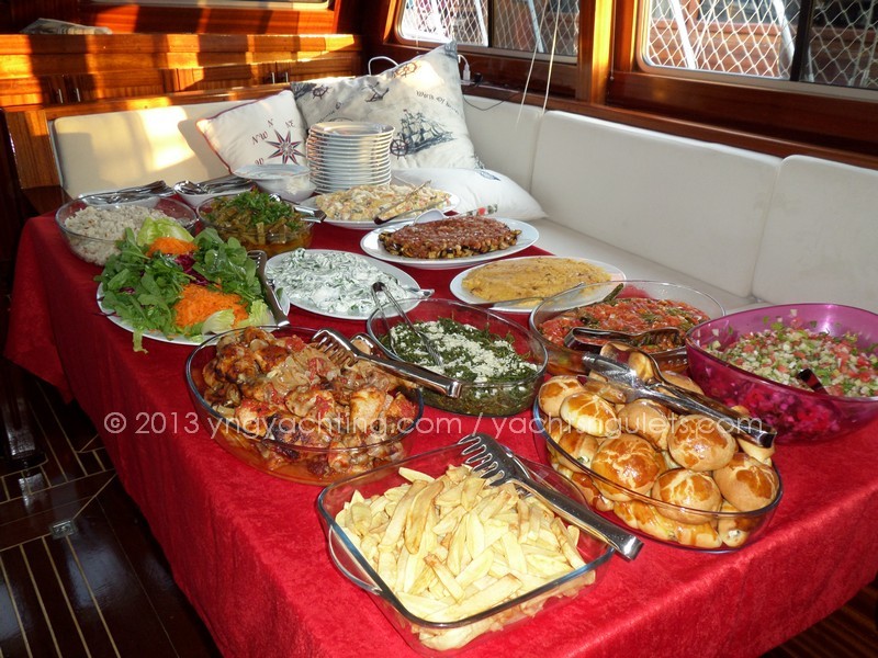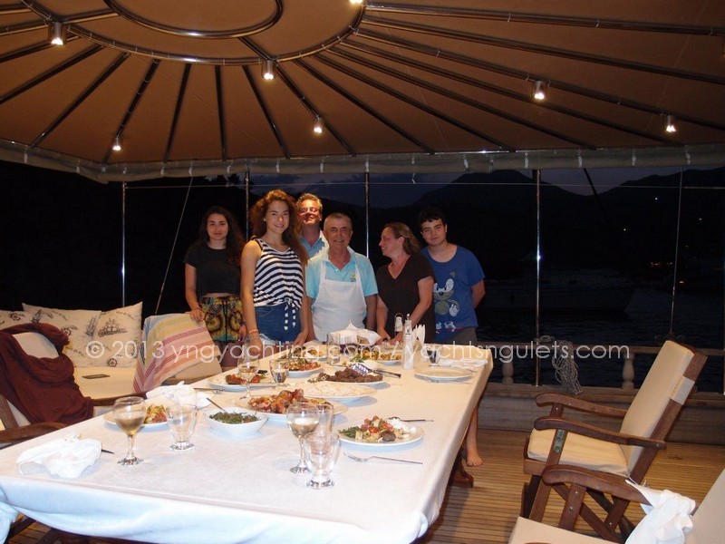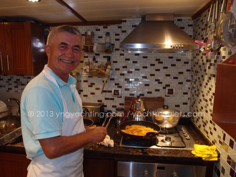 Chef cook has been working too in the yachts for the long years . He/She is quite good at the traditional kitchen and Mediterranean kitchen. If you book this yacht, we will ask, if you will have a special request for he meals or not (Vegan, Gluten Free, Low Fat etc.). Our chef will get ready the food according to your requests. You can be sure that Chef will be happy welcoming you and to care about your wishes. Always, we have received good compliments by our guests about the meals.