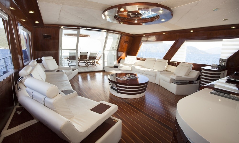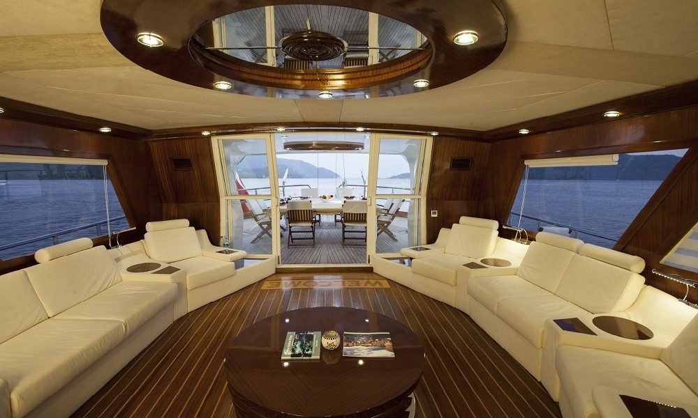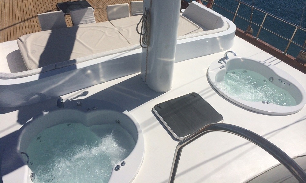This ultra luxury gulet yacht is 39 meters long and for 14 guests. It has 1 master cabin with jacuzzi , 4 WIP double cabin and 2 twin cabin. Each cabin has separate toilet, shower, TV and A/C. We offer you reasonable prices and options for blue cruise. You can spend half of your holiday in the wonderful hidden paradise bays of aegean which are in Turkey. can spend rest of holiday in Greek Islands. Second option, you can prefer only Turkey bays or Greek islands. Each day 4 hours cruise and 24 hours air conditioning is available in each cabin and living room. It is comfortable yacht for both options that you will be able to rent with the crew.
