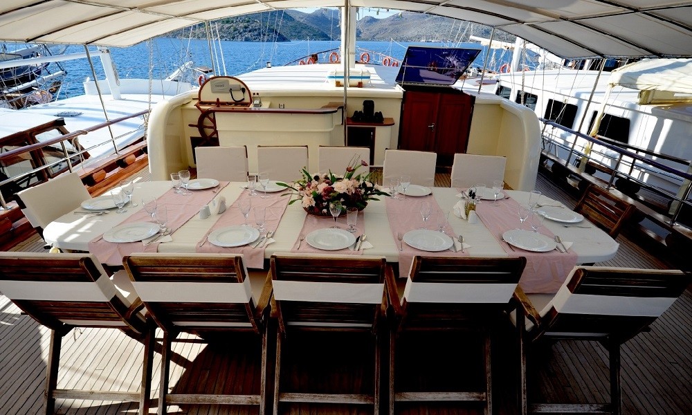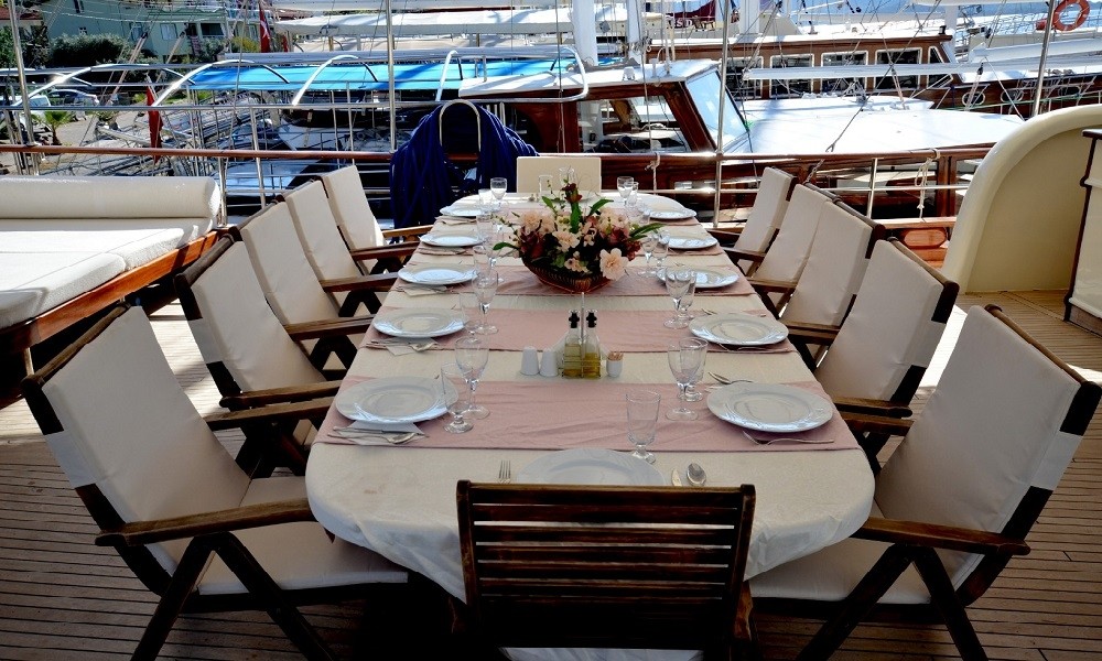 Chef cook has been working too in the yachts for the long years . He/She is quite good at the traditional kitchen and Mediterranean kitchen. If you book this yacht, we will ask, if you will have a special request for he meals or not (Vegan, Gluten Free, Low Fat etc.). Our chef will get ready the food according to your requests. You can be sure that Chef will be happy welcoming you and to care about your wishes. Always, we have received good compliments by our guests about the meals.