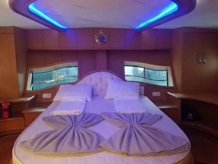This wonderful deluxe gulet yacht is 25 meters long and for 8 guests. It has 2 master cabin and 2 twin cabin. Each cabin has separate toilet, shower, TV and A/C. We offer you reasonable prices and options for blue cruise. You can spend half of your holiday in the wonderful hidden paradise bays of aegean which are in Turkey. Can spend rest of holiday in Greek Islands. Second option, you can prefer only Turkish bays or Greek islands. Each day 4 hours cruise,maximum 8 hours air conditioner is on between 14 to 16 and 22 to 04. It is comfortable yacht for both options that you will be able to rent with the crew.. CREW INFORMATION: CAPTAIN: The captain has been working as a captain since the long years in ultra luxury yachts. He is not only a professional captain but also he knows where the wonderful coasts, hidden paradise bays and historical ruins which are in Turkey very well. He will be happy to take you to the hidden paradise bays and inform about the historical ruins and culture there. CHEF COOK: Chef cook has been working too in ultra luxury yachts for the long years . He/She is quite good at the traditional kitchen and Mediterranean kitchen. If you book this yacht, we will ask, if you will have a special request for he meals or not (Vegan, Gluten Free, Low Fat etc.). Our chef will get ready the food according to your requests. You can be sure that Chef will be happy welcoming you and to care about your wishes. Always, we have received good compliments by our guests about the meals. SAILOR: 2 Sailors will be at your service during your vacation. They are very friendly and they will be happy to serve and to care of you . OUR SERVICES: we know that how important and valuable is your vacation. We will do our best to make your holiday the best and much more confortable. Our professional guide is not only for briefing with you but also will be at your service during your vacation. He/She will be happy welcoming and caring you, introduce you to the crew, give briefing about the yacht, route and boat rules. Time to time, she/he is also going to be in touch with you to be sure that you are happy during your vacation. CELEBRATION ON YACHT: (birthday party, wedding anniversary, etc), If, you give us information about the date which is for your special day. You can be sure that We will make the best decoration on the yacht. Chef will be also happy to make a special cake for the celebration date. Also you may have a bottle of champaigne free from us as the gift for your celebration. The best wishes for the best holiday Included In The Prices : •All charter and berth tax, harbour and port procedures •Transit Log and related formalities •Mooring expenses •Crew service •Ship water •Diesel & Gasoline •Bed Linen & Bath towels •Use of equipment on board •Yacht insurance •VAT Not Included In The Prices: •Yacht Catering & Beverages •Harbour taxes and custom fees in foreign waters •Airport transfers •The use of Jet-ski and the water sports on board if exist Optional : Breakfast, Lunch, Dinner Daily pre person 45 Euro